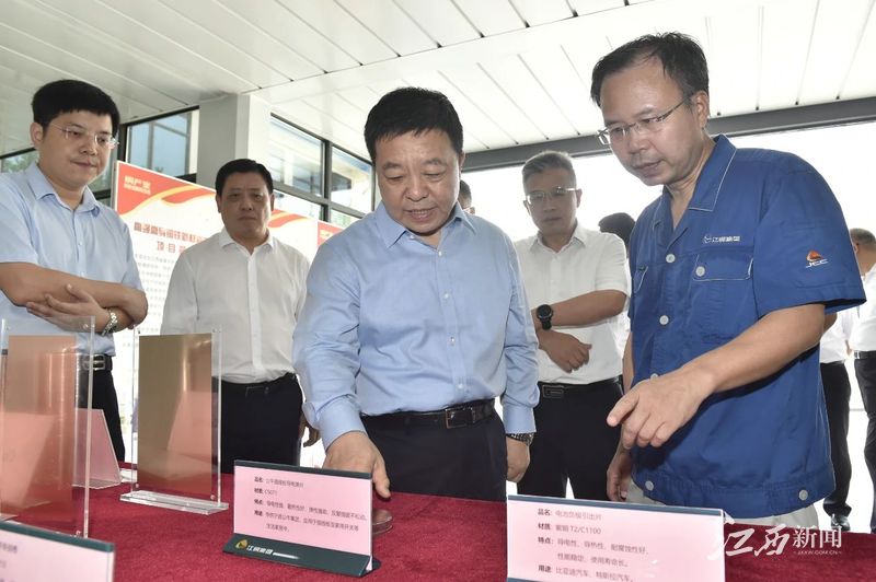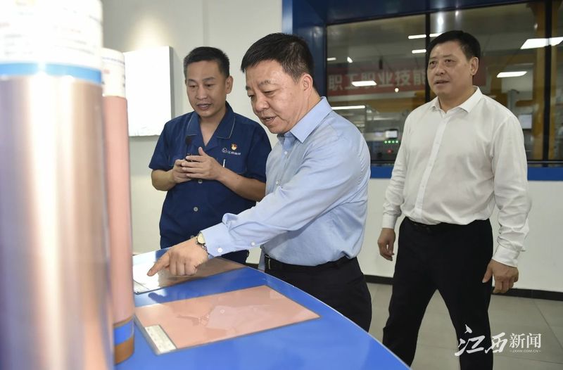江铜集团是我省铜产业链链主企业,也是铜产业科技创新联合体牵头单位。叶建春来到江铜集团南昌高新产业园,听取铜产业科技创新联合体运行情况介绍,前往江铜铜板带有限公司、江铜铜箔科技股份有限公司和江铜研究院中试基地,了解江铜集团联合科研院所、高校及有关企业开展科技攻关、推动技术入股和成果转化等情况,仔细察看依托铜产业科技创新联合体研发的先进产品,了解产品性能及应用领域,勉励青年科研人员保持科研定力、勇攀科技高峰、坚持持续创新,让青春在铜产业链创新赛道上灿烂绽放。他强调,铜产业是我省传统优势产业,要着力推动有关高校学科设置与铜产业发展精准对接,提高本土高校人才培养与企业创新发展需求的契合度,为我省铜产业发展提供源源不断的实用人才。