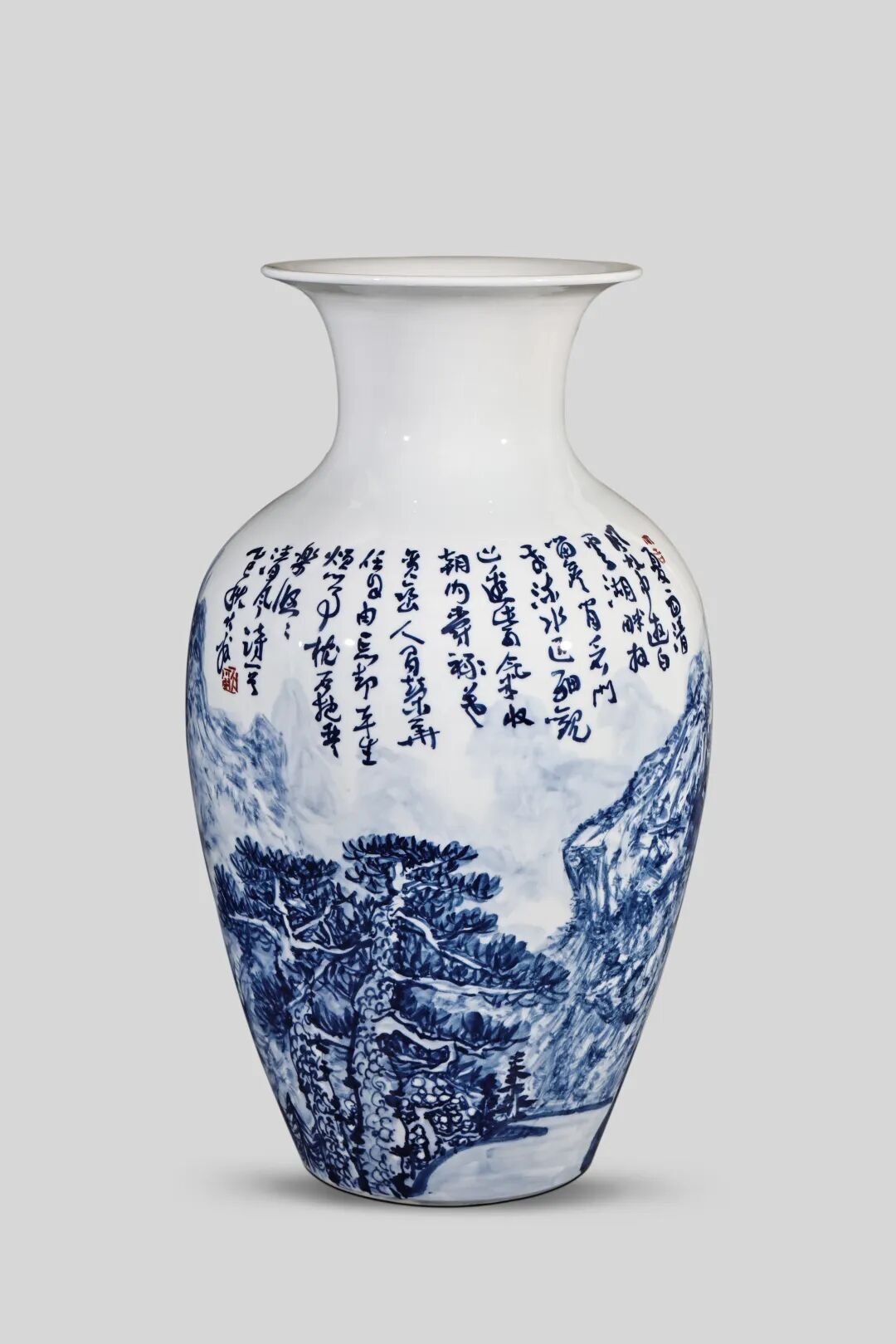 真正让大翁在“景漂”画家中脱颖而出的,是他为艺术俯下身子,酷暑之下亲临“窑炉”的勇气与实践。他不愿安耽于画室中的宁静与舒适,而是将进山写生的新鲜素材,转化为瓷上作品。从瓷坯绘制时的笔墨勾勒,到釉料调配时的精准配比,再到入窑烧制,与窑火相伴,大翁无一不亲力亲为,从窑火中凤凰涅槃的宁馨儿——每一件自己的陶瓷作品,他无不呵护备至。